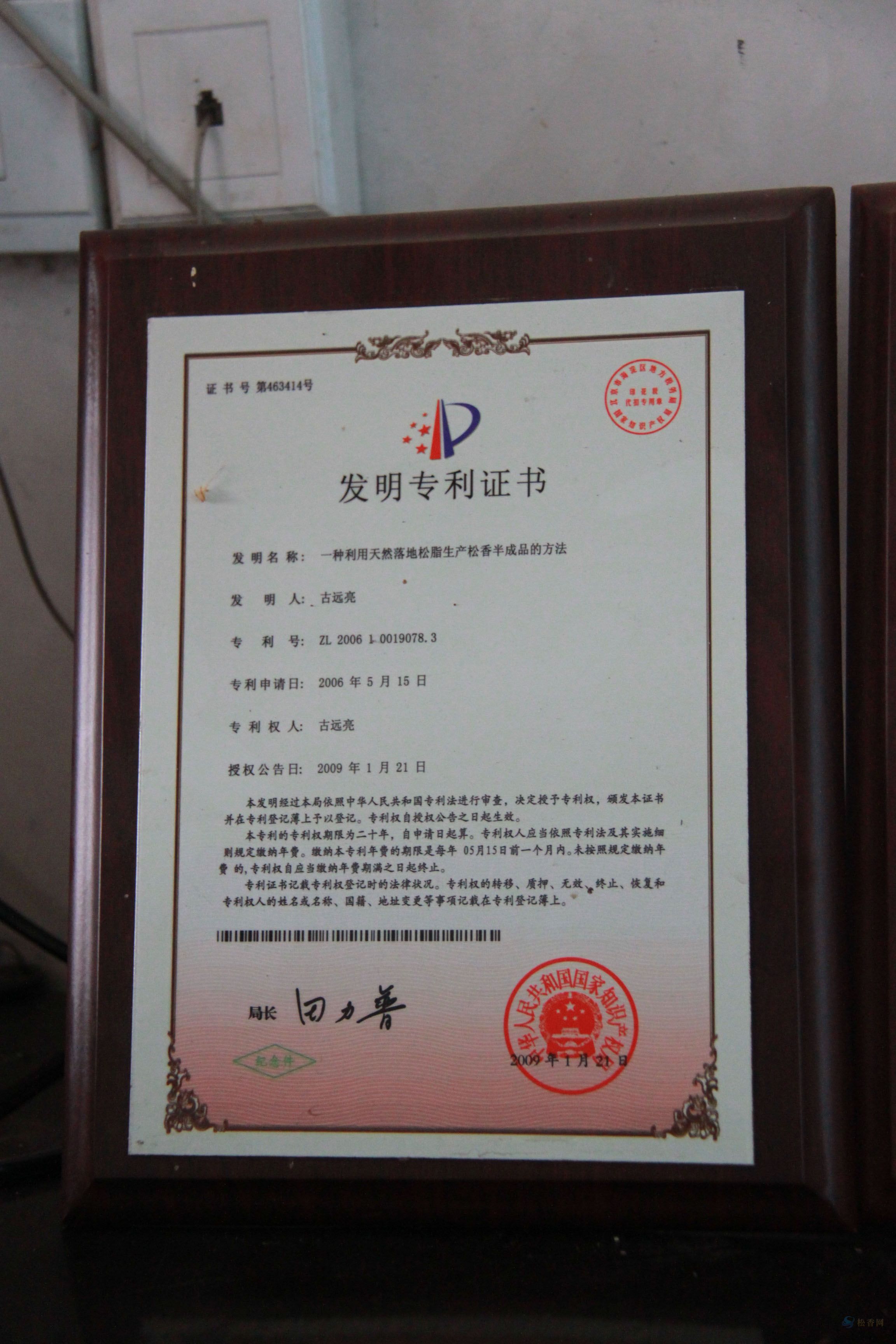 古遠亮關于落地松脂生產松香半成品的技術專利聲明
