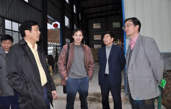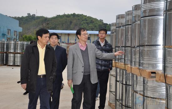 廣西區(qū)商務廳副廳長孫劍秋(右二)到廣西梧州松脂股份有限公司視察工作,左為梧松總經(jīng)理車乾池。