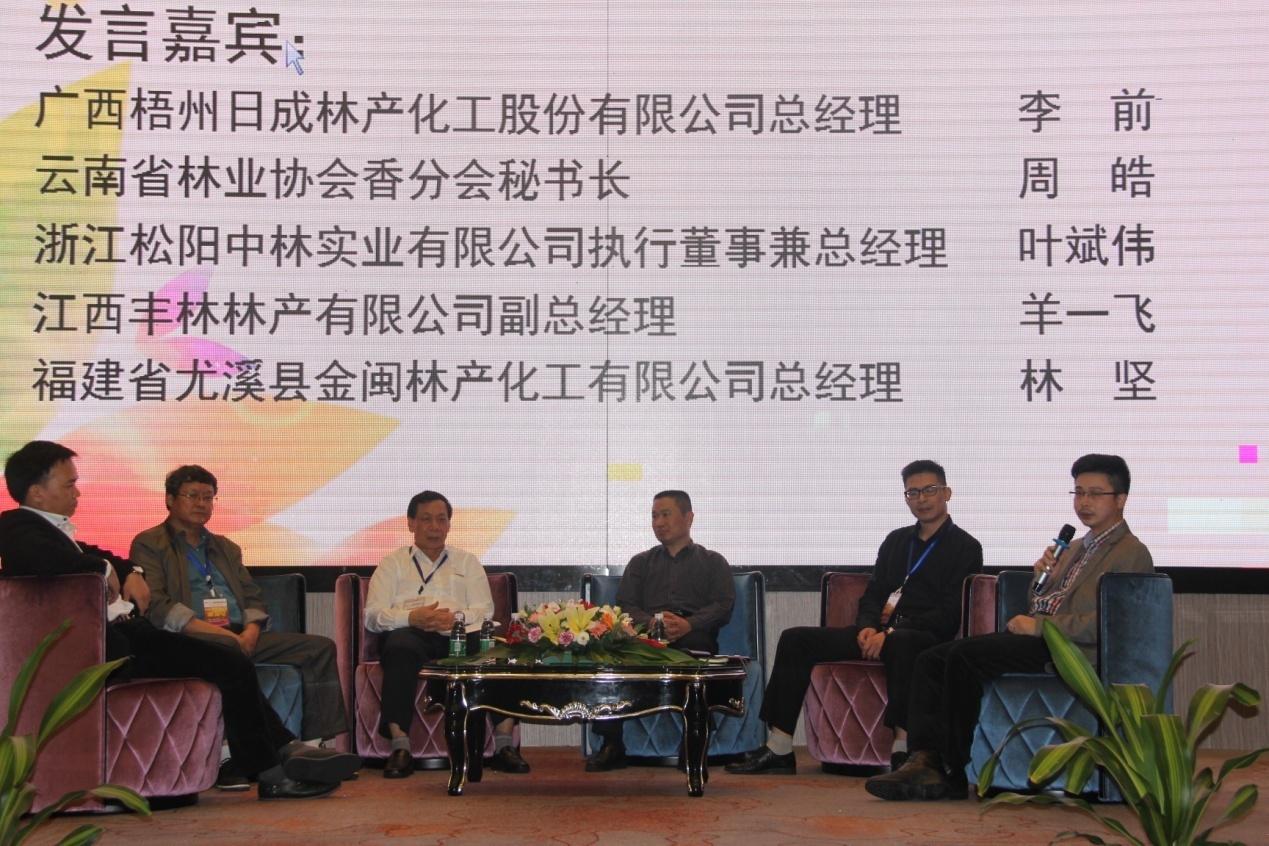 上午會(huì)議的高潮部分在分論壇一《行業(yè)轉(zhuǎn)型新模式——林地流轉(zhuǎn)探討》環(huán)節(jié),由廣東科茂林產(chǎn)化工有限公司董事長(zhǎng)曾廣建主持;四位發(fā)言嘉賓項(xiàng)應(yīng)夢(mèng)、周皓、徐立新、何發(fā)富分別就中國(guó)當(dāng)前有關(guān)林地流轉(zhuǎn)政策、林地流轉(zhuǎn)政策與松香行業(yè)的關(guān)系、林地流轉(zhuǎn)政策給松香行業(yè)發(fā)展帶來的機(jī)遇與挑戰(zhàn)、松香行業(yè)如何投資參與林地流轉(zhuǎn)經(jīng)營(yíng)等話題展開了深刻的探討。在松香需求日益萎縮的新形勢(shì)下,四位嘉賓精辟的見解及行之有效的經(jīng)驗(yàn)介紹讓參會(huì)代表收獲頗豐而贏得了參會(huì)代表陣陣熱烈的掌聲。