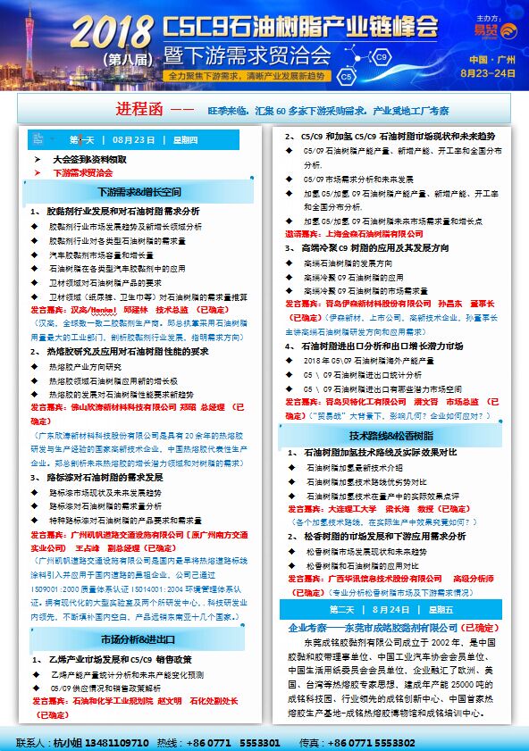 2018(第八屆)C5C9石油樹脂產(chǎn)業(yè)鏈峰會(huì)暨下游需求貿(mào)洽會(huì)(最新進(jìn)程)