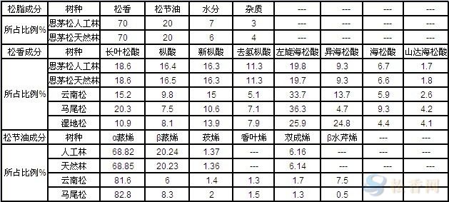 松脂資源的開發(fā)以松香、松節(jié)油極其深加工產(chǎn)品為主進行發(fā)展。思茅松與其他樹種相比有很明顯的優(yōu)勢:一是生長速度,一年有兩個年輪即增長速度快;二是松節(jié)油的出油量。按松香來比,馬尾松的是在13%左右,思茅松平均在21%左右,高的能達到25-26%,低的也有19%。三是雙蒎烯含量比較高。平均水平會在到91%以上。四是思茅松的松節(jié)油用在某些行業(yè),如香料、龍腦,可制很純正的香味,正旋可達到14-37度,高的有40度的,這是很難能可貴的,因此用思茅松松節(jié)油做出來的香料售價比較高。