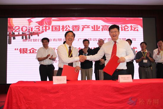 為全面支持松香行業(yè)可持續(xù)發(fā)展,會上還進行了“銀企全面合作”簽訂儀式, 柳州銀行與華訊松香網(wǎng)簽訂合作協(xié)議,向行業(yè)提供30億以上的資金支持,運用于電子商務,為行業(yè)提供全方位、多層次的金融服務。