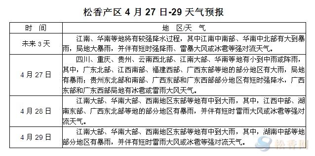 松香產(chǎn)區(qū)4月27日-29日天氣預(yù)報(bào)