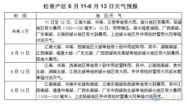 松香產(chǎn)區(qū)6月11日-13日天氣預(yù)報