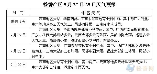松香產(chǎn)區(qū)9月27日-29日天氣預(yù)報(bào)