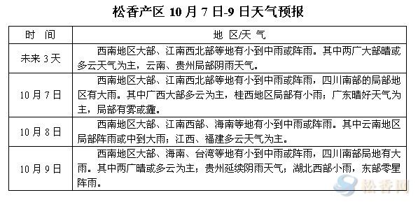 松香產區(qū)10月7日-9日天氣預報