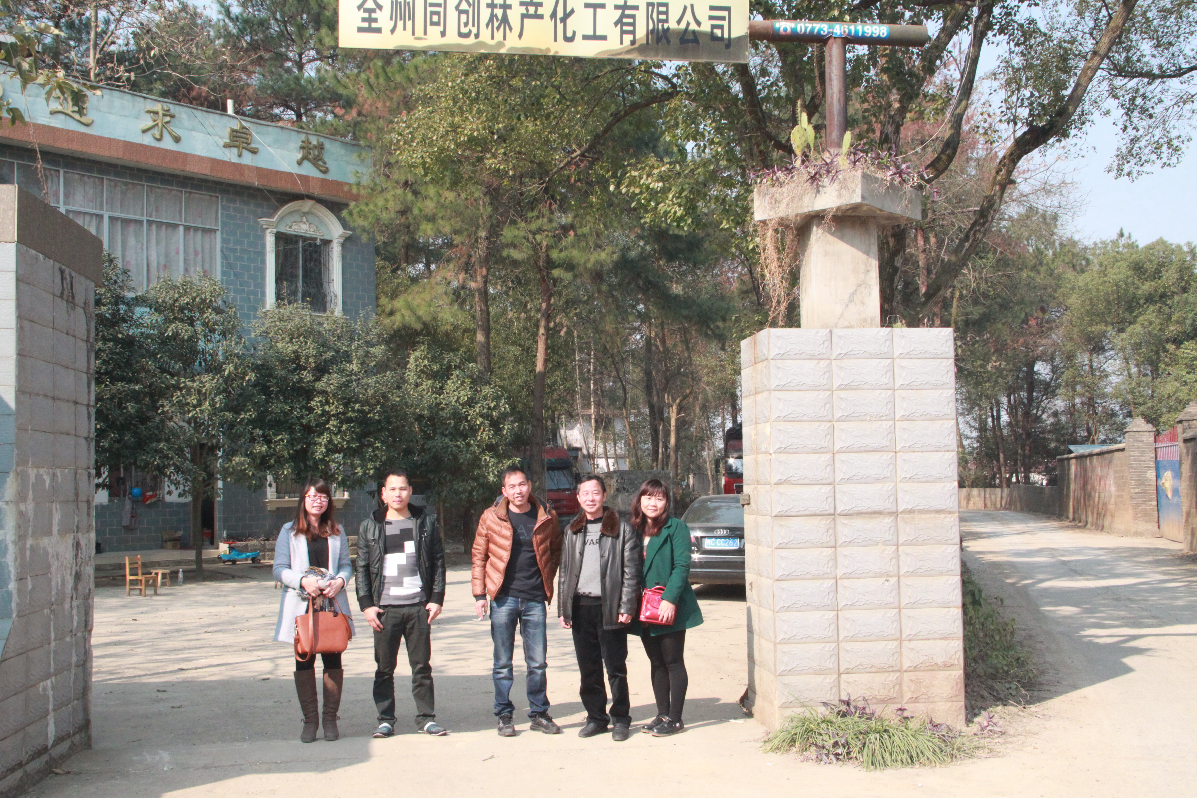 全州同創(chuàng)林產(chǎn)化工有限公司梁總(左二)、張總(左三)與華訊松香網(wǎng)合影
