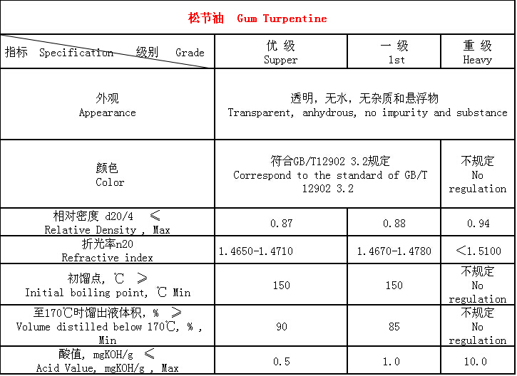 松節(jié)油技術(shù)指標(biāo)