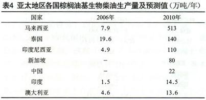 亞太地區(qū)也正在興起生物柴油產(chǎn)業(yè)。到2010年,亞洲將超過北美,以及中/東歐,成為僅次于西歐的第二大生物柴油生產(chǎn)地。表4列出亞太地區(qū)各國棕櫚油基生物柴油生產(chǎn)量及預(yù)測值。
