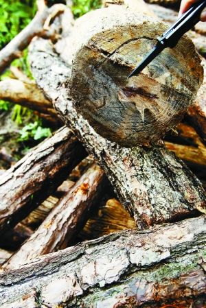 受到蟲害的馬尾松切面會出現(xiàn)藍斑。