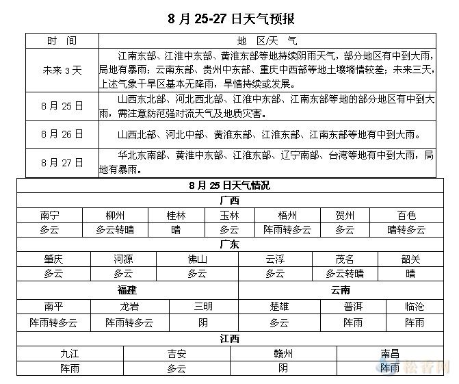松香產(chǎn)區(qū)8月25-27日天氣預(yù)報(bào)