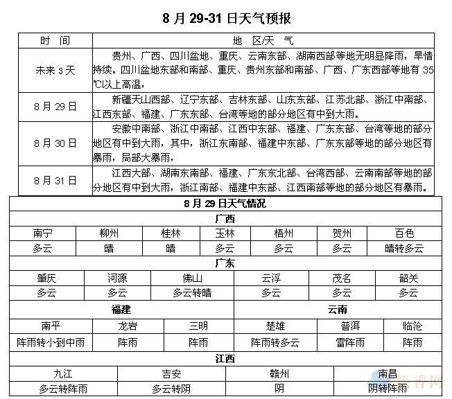 松香產(chǎn)區(qū)8月29-31日天氣預(yù)報(bào)