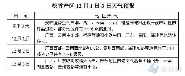 松香產(chǎn)區(qū)12月1日-3日天氣預(yù)報(bào)