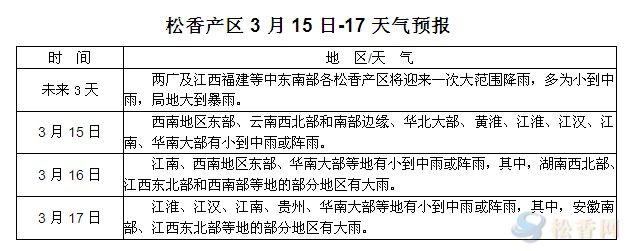 松香產(chǎn)區(qū)3月15日-17日天氣預(yù)報(bào)